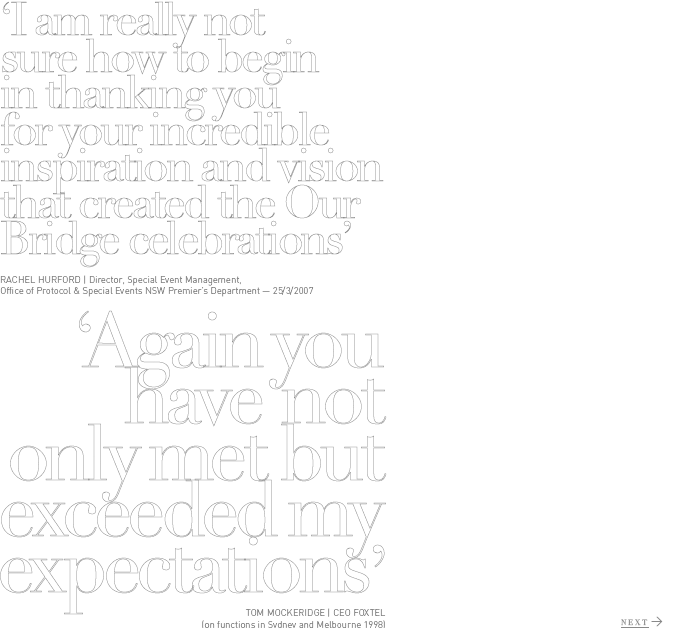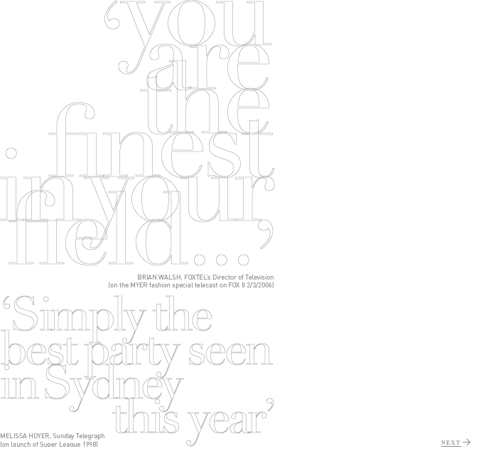 FOXTEL. Two of the many events for the pay TV company since 1996. Launch of FOXTEL Digital Foxtel Programming Launch.