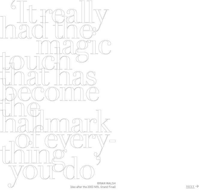 NRL. Over the years, starting with the launch of Super League in 1997, I have created many events for The National Rugby League from large scale dinners to nine Grand Finals. Grand Final – Early Years, Grand Final 06,Grand Final 07, Grand Final 08, Season Launch 08, Centenary of Rugby League Dinner, Super League